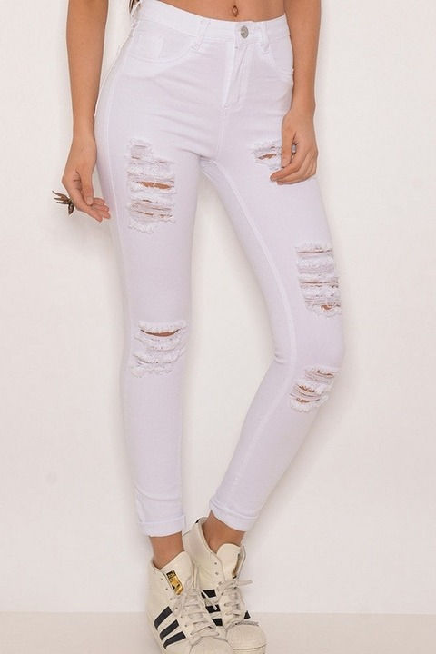 Pantalón Jeans Tiro Alto Con Roturas Blanco