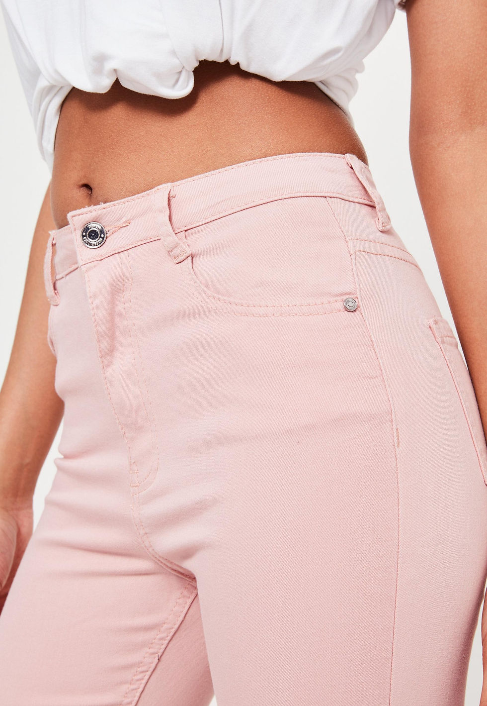 Pantalón Jeans Elastizado Tiro Alto Rosa Color Nude